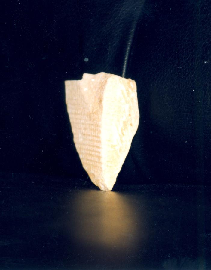 The proof in question is perfectly material - a fragment of a stone block from the Cheops Pyramid taken from its external masonry the height of 50 metres. This fragment broke off a block's top corner. The fragment is a mere 6.5 centimetres long, qv in figs. 19.58, 19.59, 19.60, 19.61, 19.62, 19.63 and 19.64. The fragment was kindly lent to us by Professor I. V. Davidenko (Moscow), who also called our attention to the circumstance that identifies said fragment as a piece of concrete without a shade of ambiguity.