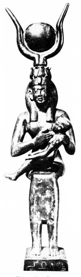In fig. 19.139 we see an "ancient" Egyptian bronze statue that portrays Isis with the infant Horus. A similar image is reflected in the "ancient" Egyptian stone sculpture dating from the alleged I century A. D. - "Isis feeding Horus" (see fig. 19.140). On the head of Isis we see a crescent with a star, or the sun - a symbol of Czar-Grad, in other words.