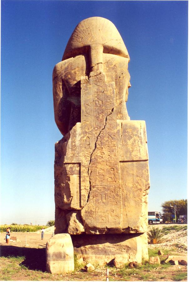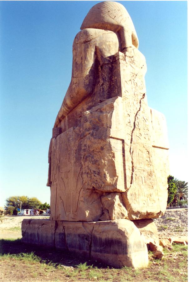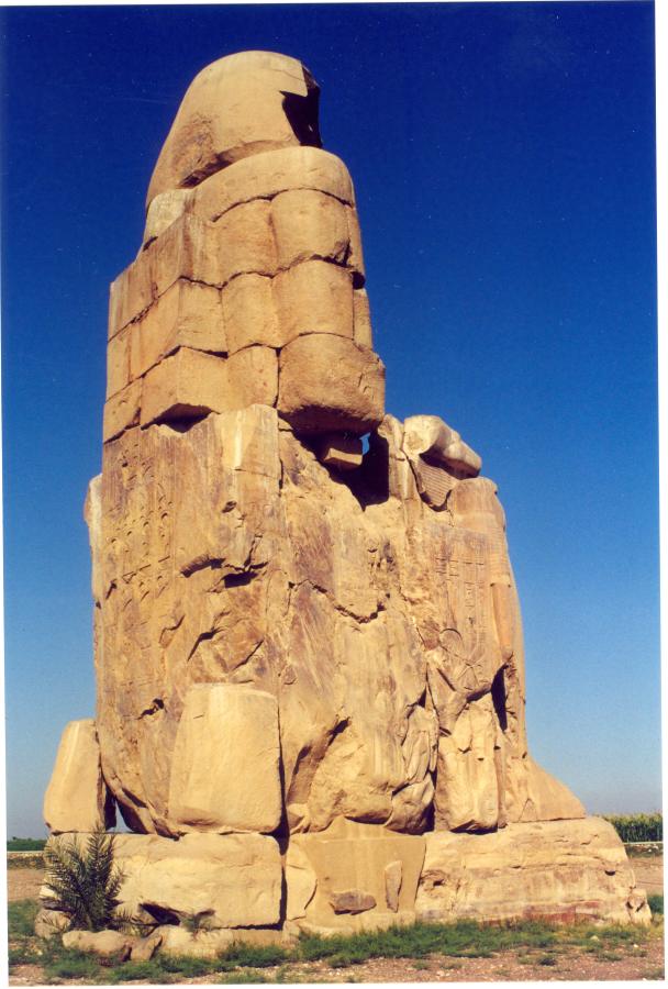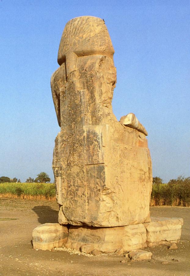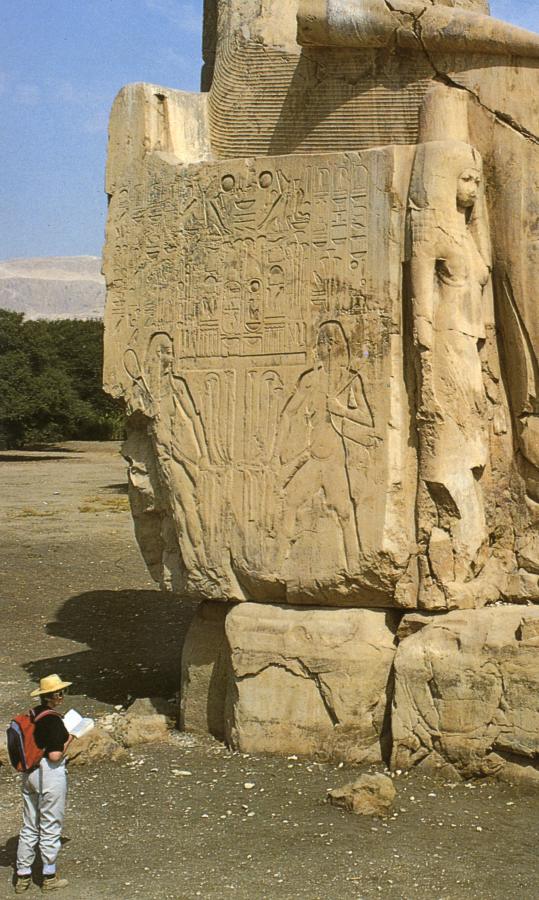 In fig. 19.120 we reproduce a drawing made by Napoleon's artists, which reproduces both of the Colossi with much precision ([1100]). As we can see in the photograph from a modern publication ([370]), the Orthodox Christian cross that has reached us in a better condition is on the back of the throne occupied by the southern figure, which is on the left of fig. 19.120. What do we see in the corresponding drawing made by Napoleon's artists? We must remember that they were very meticulous and earnest in their approach to the task of reproducing the Egyptian monuments as they were first seen by the Europeans, who came here in multitudes for the very first time at the very end of the XVIII century. All the drawings and copies collected in the fundamental edition ([1100]) are surprisingly accurate, up to the minor details. The French drawings are truly a priceless document that permits a glimpse of the authentic Egyptian history of the XVIII century - after all, many of the Egyptian monuments have perished since then ([370], [380], [728] and [2]).
