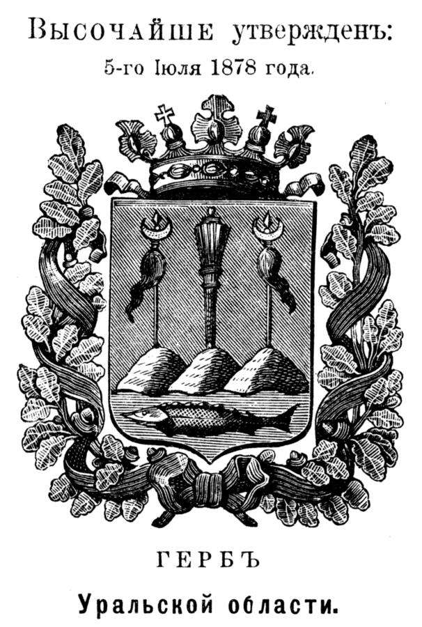 As a matter of fact, the Encyclopaedic dictionary slyly omits some information. The Cossack bunchuks symbolised the authority of the Atamans far beyond the territories of Poland and the Ukraine. For instance, in fig. 19.114 we see the coat of arms of the Ural region, which was ratified in 1878. The old description of the coat of arms is as follows: "A green field . . . with golden . . . bunchuks, topped with similar crescents facing upwards and golden spearheads" ([162], page 200). Therefore, the Cossacks from the Ural (formerly Yaik) preserved the bunchuks and also the golden Ottoman = Ataman crescents in their coat of arms up until the end of the XIX century. One must assume that the pressure of Scaligerian and Millerian history made the people forget that the Ottoman = Ataman bunchuks and crescents symbolised the authority of the Russian Empire, or the Horde, in many lands that lay beyond the territory of modern Russia. There are many surviving examples of this fact.
