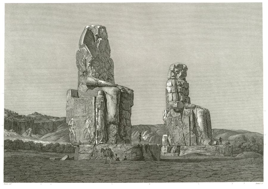 13. Napoleon's artists reproduced the Christian motif of the Exaltation of the Holy Cross in their drawings of the "ancient" Egyptian Colossi of Memnon.