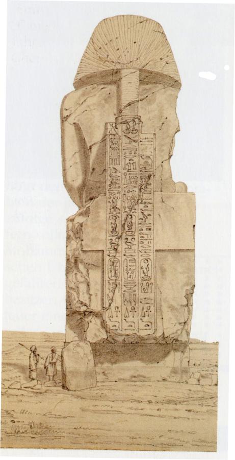 For example, let us consider the drawing of the Egyptian Colossus of Memnon as mentioned above, which was made in 1832 by the famous artist and traveller Frederick Catherwood (fig. 19.122). Unlike the French artists of Napoleon, Catherwood reproduced the wide Orthodox cross from the back of the throne very faithfully. Moreover, he was very accurate in his attempt to reproduce the hieroglyphic inscription that covered the entire vertical stripe of the cross. When we compare it to the modern photograph (fig. 19.44), we see that the text is virtually invisible today. It is possible that someone used a chisel for making the inscription illegible. It would be very interesting to use the old drawing of Catherwood in order to read it. As we have mentioned above, Napoleon's artists failed to reproduce the cross, let alone the lettering upon it.