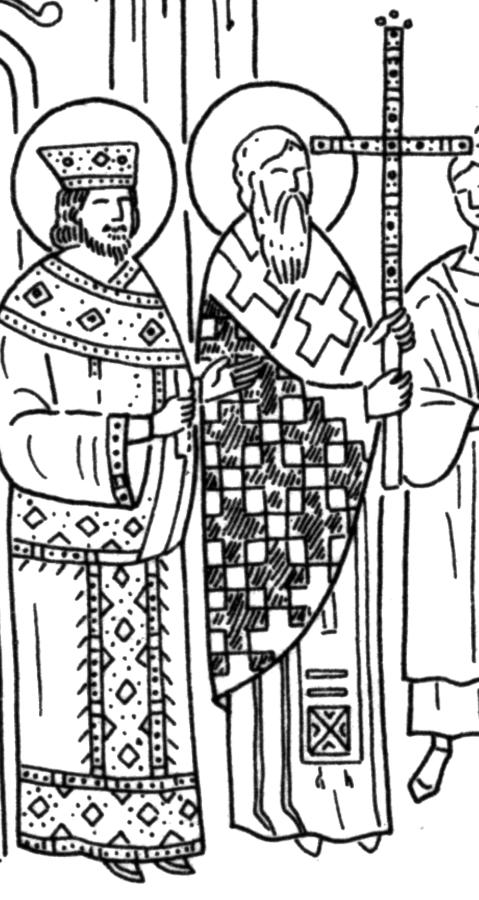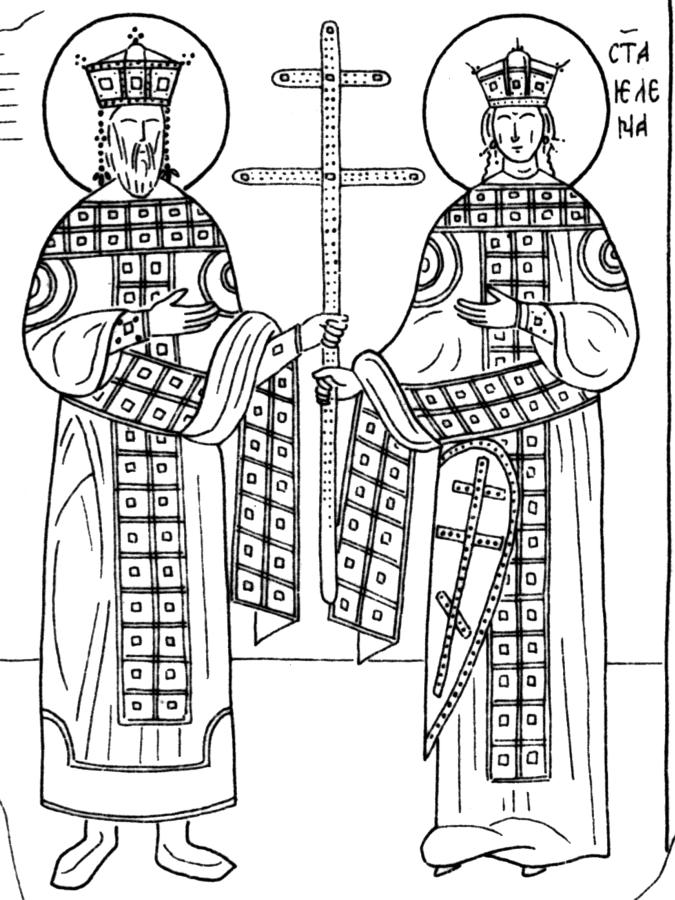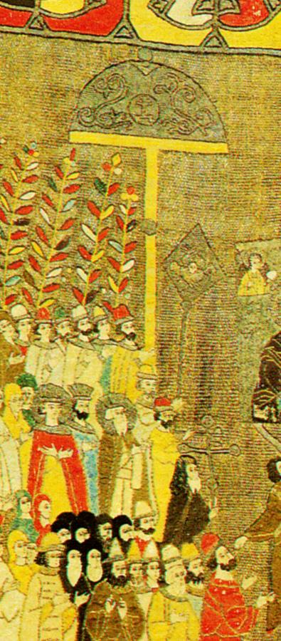 Two enormous Christian T-shaped crosses were depicted on the Russian veil of Helen of Volokh dating from 1498 (figs. 19.135 and 19.136). We see a church procession participated by the Russian Czar (or Khan of the Horde) Ivan III with his wife Sophia, son Vassily and grandson Dmitriy Ivanovich ([812], page 60).