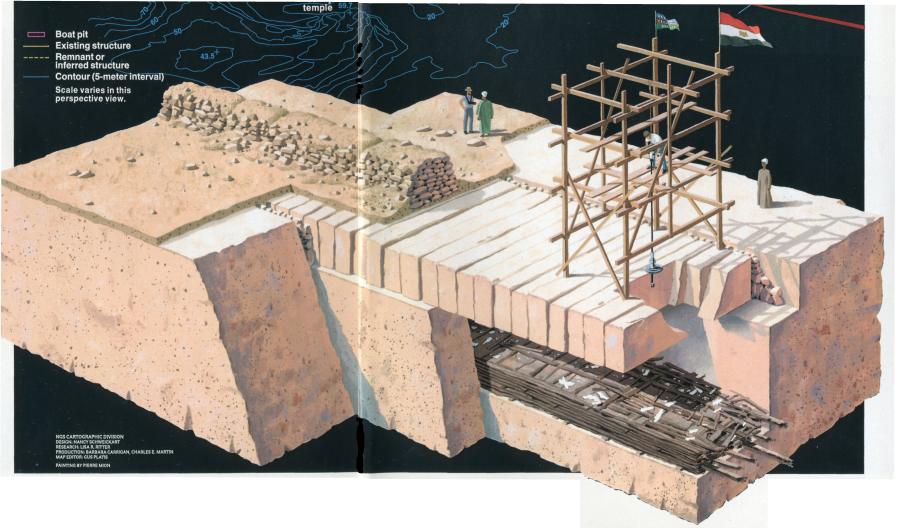 Another question that arises in this respect is as follows. Modern historians are trying to convince us that the Pharaohs lived right next to the pyramids. In this case, why would one have to build two enormous boats whose length exceeds forty metres in order to transport the Pharaoh's body over the small distance that lay between the palace and the pyramid? It is suggested that a symbolic voyage across the Nile was the only reason. This may be so.