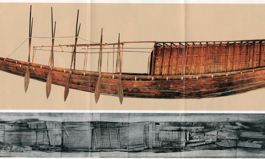 16. The two famous boats of the "ancient" Egyptian Pharaoh Cheops (Khufu) were made of wooden boards. Therefore, they are of a very late origin, and their manufacture must have employed iron or steel saws.