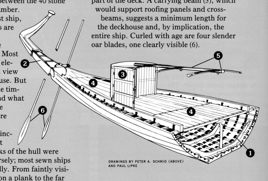 We must emphasise that both boats were made of cedar ([1281], page 514). However, no cedars fit for timber have ever grown in Egypt. Hence the assumption of the historians that cedar timber was brought to Egypt from Lebanon ([1281], page 514). It has to be said that cedar trees also grow in Europe and in Siberia in large quantities.