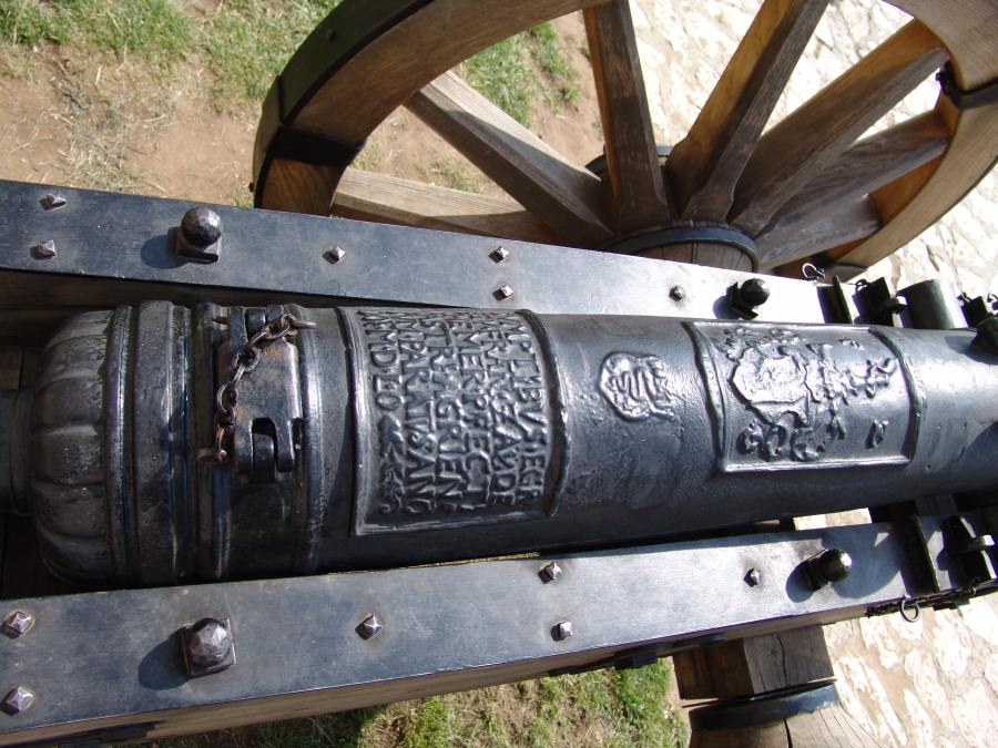 На рис.1.21-23, рис.1.24, рис.1.25, рис.1.26, рис.1.27, рис.1.28-29, рис.1.30, рис.1.31-32, рис.1.33 мы показываем несколько средневековых пушек малого и среднего калибра, хранящихся сегодня в венгерской крепости Егер (Eger). Их относят к XVI веку, когда османская армия, двигаясь через современную Венгрию, осадила крепость Егер в 1522 году [1259:1], с.23-24. Согласно нашим результатам, это была эпоха османского-атаманского завоевания Европы "монгольскими" войсками Иисуса Навина, см. книгу "Библейская Русь". Пушки, хранящиеся сегодня в городе Егере, конечно, несравнимы с огромными крупнокалиберными русско-ордынскими пушками и казацкими мортирами XV-XVI веков, о которых мы подробно рассказывали в книгах "Библейская Русь", гл.4, и "Реконструкция". По-видимому, в окрестностях Егера битвы были не особенно крупные, поэтому и большой калибр тут не потребовался. Тем не менее, средневековые пушки Егера представляют определенный интерес. Кстати, сегодня нас убеждают, будто все они - западно-европейские, что "турецких пушек тут не сохранилось". Так говорят официальные экскурсоводы Егера. Однако обращает на себя внимание тот странный факт, что егерские пушки малого калибра несут на себе латинские и другие надписи, а вот пушки среднего калибра почему-то вообще не имеют надписей. Точнее, когда-то надписи на стволах, скорее всего, были, однако затем их сбили или залили, заварили металлом. Во всяком случае, на тех местах, где можно было ожидать надписи, сегодня мы видим странные металлические "нашлепки", прочно приваренные в старинным стволам, рис.1.24, рис.1.28-29, рис.1.30, рис.1.31-32, рис.1.33. Не являются ли эти средние пушки, но чуть более крупного калибра, - османскими? Надписи на которых потом зачем-то уничтожили. Согласно нашей реконструкции, османское-атаманское завоевание было в определенном смысле гражданской войной внутри Великой = "Монгольской" Империи XVI века. В этом смысле ВСЕ ПУШКИ ТОЙ ПОРЫ БЫЛИ ОРДЫНСКО-"МОНГОЛЬСКИМИ". Просто одни стреляли с одной стороны, а другие - с другой. Ордынцы палили в ордынцев же. Но потом, в эпоху Реформации, часть этих орудий западные реформаторы объявили "своими", а другие - "вражескими". На "вражеских" пушках надписи уничтожили. Однако потом, подумав, вообще заявили, что теперь все уцелевшие старинные пушки - "наши". В том числе и более крупного калибра. И гордо выставили в музее. В итоге от османов "не осталось следов".