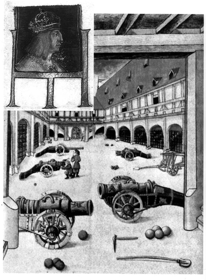 На рис.1.34 приведено старинное изображение пушечного арсенала императора Максимилиана I. Напомним, что, согласно нашим результатам, Габсбург "Максимилиан I" является отражением на страницах западноевропейских летописей русско-ордынского императора-хана Василия III. См. "Реконструкция", гл.13:19. Следовательно, на рис.1.34 мы видим "монгольские", они же израильские, они же ордынские орудия царя-хана Василия III.