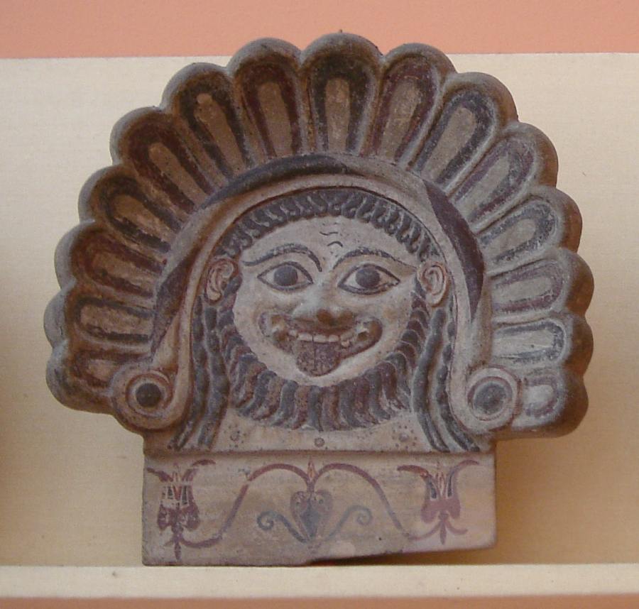 Далее, во лбу каждого Киклопа - только один глаз. Да и само название КИКЛОП, как думали позднейшие авторы, означало КРУГЛОГЛАЗЫЙ, см. выше. Скорее всего, первоначально имелось в виду КРУГЛОЕ ЖЕРЛО ПУШКИ, рис.2.16. Страшный "глаз", извергавший смерть. Из круглого и глубокого отверстия ствола вылетали огонь, ядра, картечь. Недаром огненное оружие, выкованное Киклопами, названо ГРОЗНЫМ. Напомним, что отсюда также родился страшный образ Медузы-Горгоны, один лишь взгляд которой мгновенно убивал людей, см. нашу книгу "Начало Ордынской Руси". Изображения Медузы, то есть символа пушечного жерла, были исключительно популярны в "античном" мире, рис.2.17, рис.2.18, рис.2.19, рис.2.20, рис.2.21, рис.2.22, рис.2.13, рис.2.23, рис.2.24, рис.2.25, рис.2.25a. Опять-таки считалось, что здесь смерть приносит ВЗГЛЯД, то есть ГЛАЗ или глаза Медузы-Горгоны. Ее голову часто изображали на щите воинственной богини Афины, рис.2.26 и рис.2.27. См. также рис.2.28.