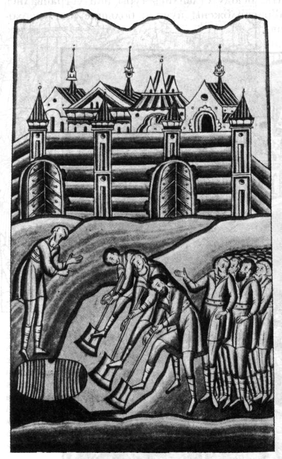 Потом был отдан приказ делать подкопы под городские стены, чтобы взорвать их порохом, рис.5.23. <<"Посем православный царь повелевает некоторому дохтуру именем Размыслу учинить подкоп под стену на разрушение града". Затем, узнав, что казанцы берут воду из ключа-тайника близ одних ворот, к которым ходят подземным путем, он приказал Адашеву с учеником размысла сделать другой подкоп под этот подземный путь у каменной Даировой башни, занятой нашими казаками. К 4 сентября подкоп под тайник был готов; сам князь Серебряный вошел в него и слышал голоса людей, ехавших за водой; государь велел поставить в подкоп 11 бочек пороха, и тайник был взорван, причем взлетевшими камнями и бревнами было побито множество народа в городе; часть же нашего войска, воспользовавшись отверстием, сделанным взрывом, ворвалась в Казань и тоже посекла большое количество людей. После этого сильное уныние распространилось в городе, лишенном воды, однако о сдаче никто не думал; татары стали усиленно копать землю в нескольких местах для отыскания воды>> [578], кн.2, с.424.