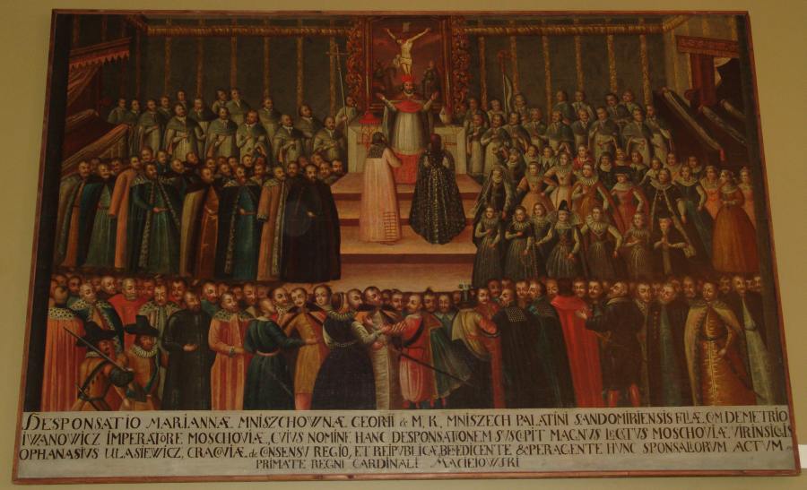 В "1608 г. ... Марина Мнишек, уговоренная Рожинским и Сапегою, признала Лжедмитрия II своим мужем и для заглушения укоров совести была с ним тайно обвенчана" [988:00], "Лжедмитрий II".