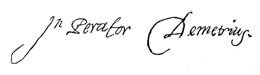 На рис.6.13 приведена якобы подпись "Лже"-Дмитрия по-латински. Обратите внимание, что вместо "Imperator" написано "In Perator". Мы уже неоднократно отмечали, что раньше латинские буквы N и M могли подменять друг друга.