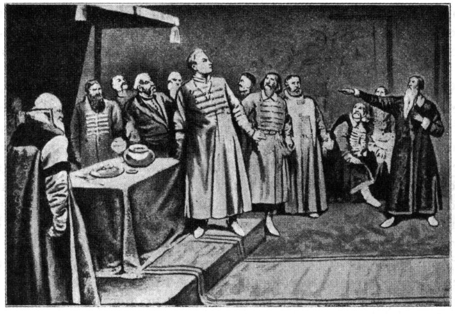 ## ОДНАКО ЗАТЕМ ЗНАТНЫЙ ПРИДВОРНЫЙ, КОТОРОГО ВЛАСТИ СЧИТАЛИ "СВОИМ", НЕОЖИДАННО ВЫСТУПАЕТ ПРОТИВ САМОЗВАНЦА.