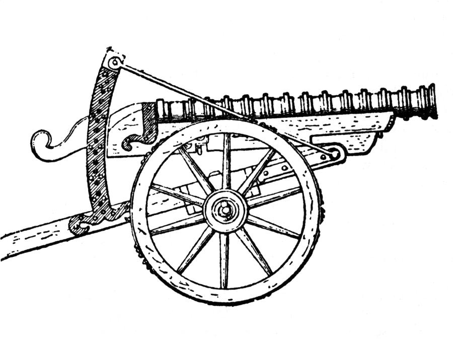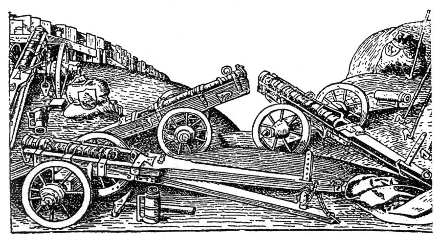 Перейдем к огнестрельному оружию конкистадоров, то есть ордынцев и османов-атаманов. На рис.8.71 показана аркебуза XVI века. На рис.8.72, рис.8.73, рис.8.74, рис.8.75, рис.8.76, рис.8.77, рис.8.78 показаны различные типы легкого и среднего огнестрельного оружия, бывшего в то время на вооружении Руси-Орды и Османии-Атамании. Сегодня некоторые из них размещены в западно-европейских музеях, как якобы, "местное вооружение" . Тяжелых орудий здесь мы не видим, поскольку на первых порах они использовались, в основном, лишь в Евразии ввиду трудности перевозки через океан. Орудия, аналогичные испанским = османским-атаманским клепаным бомбардам XVI века, показанным на рис.8.73, сегодня можно видеть, например, в музее венгерского города Вышгорода, см. рис.8.79 и рис.8.80. Здесь сохранились остатки старинной ордынской крепости, контролировавшей реку Дунай. Похожий вид имели русские легкие морские пушки времен Петра I, рис.8.81.