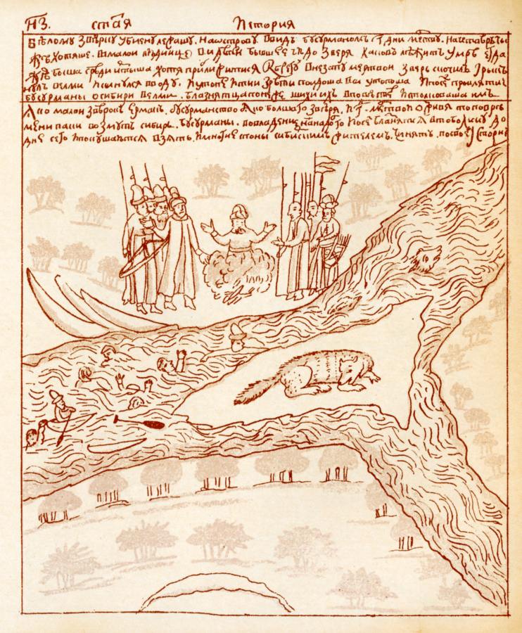 В Кунгурской = Ремезовской Летописи мрачным предзнаменованиям Остякам действительно уделено заметное место, рис.8.82, рис.8.83, рис.8.84. В частности, погибший зверь пролежал три дня на острове, но как только люди подошли посмотреть на него, он воскрес, вскочил, бросился в реку и утонул. Вслед за ним утонули и все пришедшие люди.
