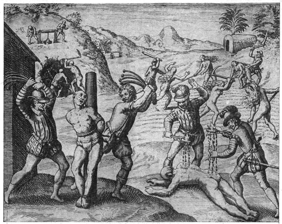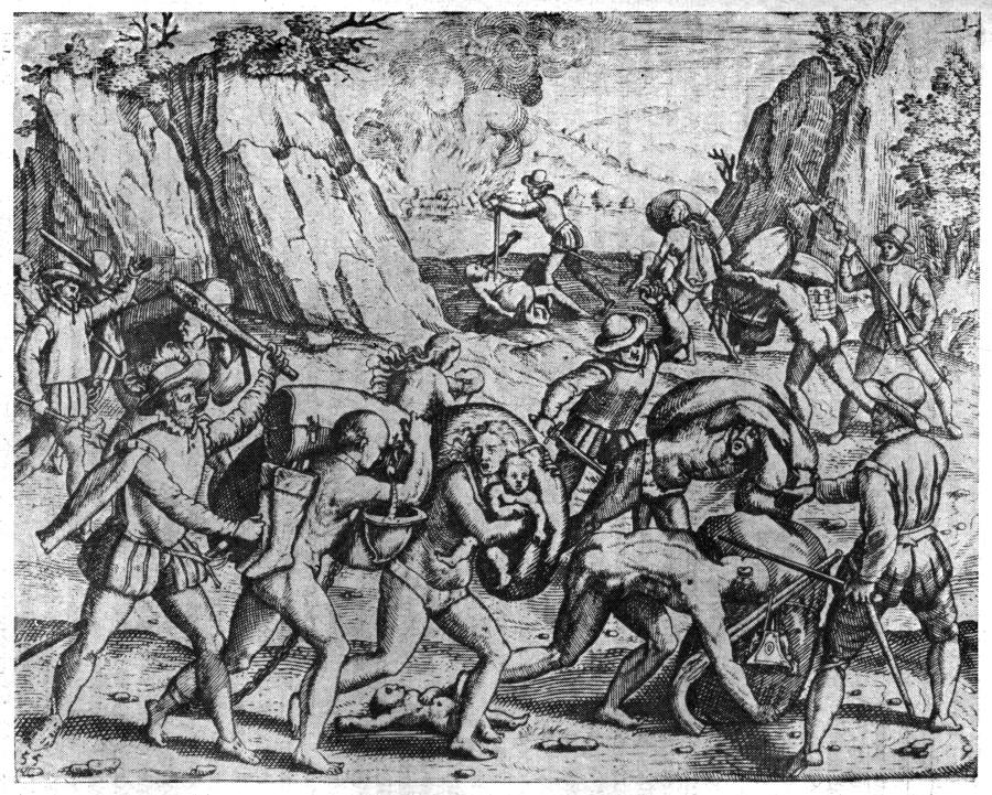 Но теперь мы начинаем понимать, в чем дело. Скорее всего, испанские хроники эпохи конкисты зафиксировали не только события в Америке, но и события, развернувшиеся еще в Западной Европе. То есть на пути османов-атаманов = испанцев в Америку. Прежде чем переплыть океан, они "чистили" Европу, старались избавить ее от эпидемий. Все это описано в ветхозаветной книге "Иисус Навин". Следовательно, по крайней мере часть жестокостей следует отнести именно к этому времени и к этим европейским территориям. Потом, когда хронология была запутана скалигеровскими историками, западно-европейские события иногда перестали отличать от американских. И ошибочно решили, будто речь шла ИСКЛЮЧИТЕЛЬНО об Америке. При этом под именем "индейцев" хронисты объединили как настоящих жителей Америки, так и западных европейцев. Кроме того, многие жестокости, творившиеся в Америке, следует отнести на счет реформаторов XVII-XVIII веков, приплывших в Америку для разгрома русско-ордынских цивилизаций Майя, Ацтеков, Инков.