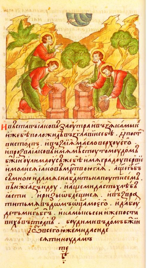 # ПАМЯТНЫЙ СТОЛП. - Лицевой Свод говорит, что Иаков поставил ПАМЯТНЫЙ СТОЛБ на том месте, где ему было дано видение. Скорее всего, СТОЛПОМ здесь назван крест, на котором распяли Христа. Мы уже неоднократно показывали, что старинные авторы употребляли слово СТОЛП или ДРЕВО для обозначения Креста Господня. Говорили, например, так: Христос был ВОЗНЕСЕН НА ДРЕВО.