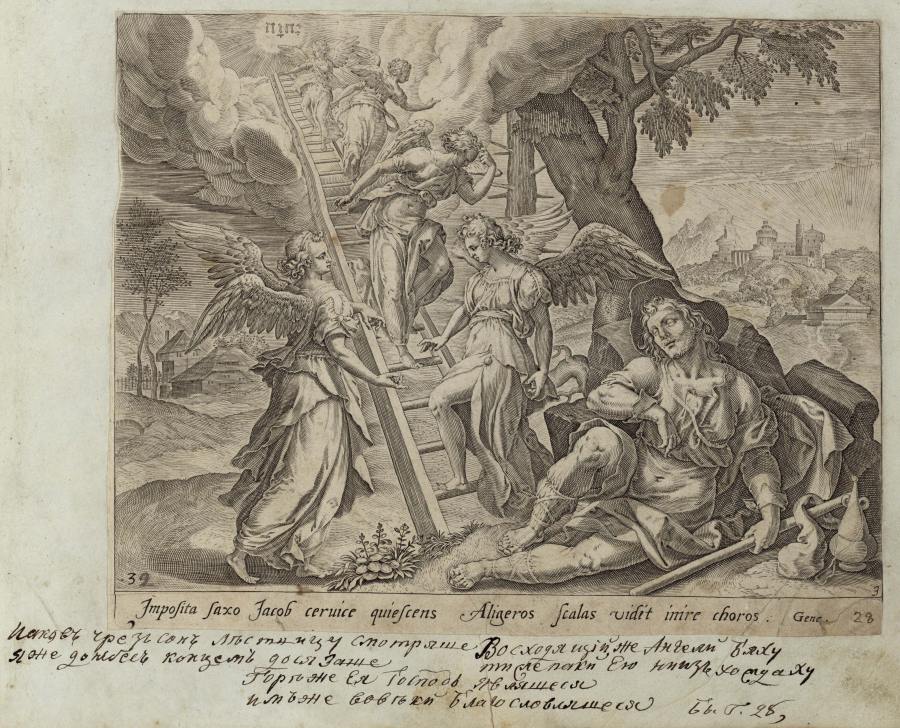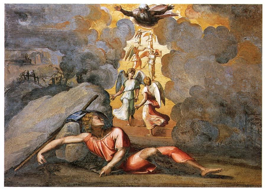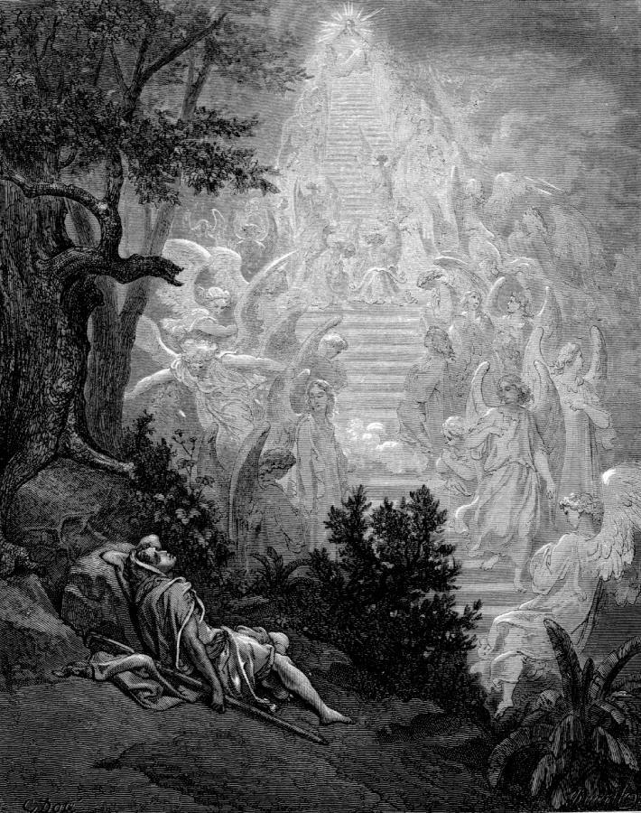 В Ветхом Завете есть следующая известная сцена, которую иногда именуют "Лестницей (Лествица) Иакова" или "Сновидением Иакова". Вот что сказано.