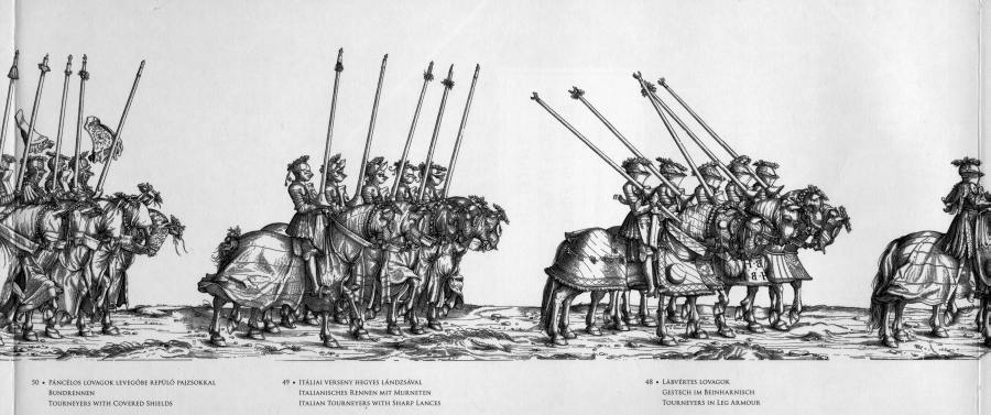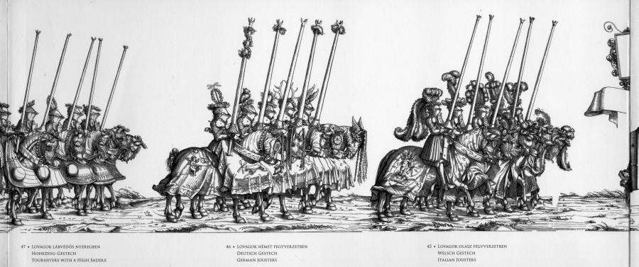Перейдем теперь к знаменитой серии гравюр под названием "Триумфальная Процессия Императора Максимилиана I". Поскольку она была создана в то же время и в общем теми же германскими мастерами, то возникает естественная мысль, что потом ее также могли отредактировать. По тем же причинам, что и "Арку Славы". В частности, постарались устранить все следы, указывавшие на то, что Максимилиан I - это на самом деле русско-ордынский царь-хан Василий III. А также что династия Габсбургов ранее XVII века - это, попросту, династия русско-ордынских ханов Великой = "Монгольской" Империи, метрополией которой была Русь-Орда. Обратимся теперь непосредственно к данным гравюрам, чтобы проверить наше логическое предположение о ее позднем редактировании.