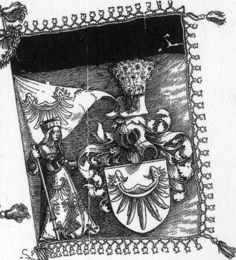 В заключение пройдемся еще раз по уцелевшим изображениям. Обращает на себя внимание, что на многих гербах показан двуглавый орел, рис.p53. Как мы подробно обсуждали в книге "Новая хронология Руси", гл.14:24, он был государственным символом Великой = "Монгольской" Империи. Позднее было объявлено, что это - символ "древней" Римской Империи. Что, кстати, ВЕРНО, но с одной хронологической поправкой. Как мы показали в книге "Царский Рим в Междуречье Оки и Волги", Русь-Орда XIV-XVI веков и "античная" Римская Империя - это одно и то же.