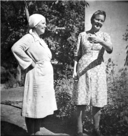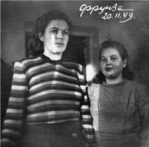 Мамина младшая сестра Граня (Глафира) заходила иногда в гости к маме. Папа их сфотографировал однажды. Это было у нас в «десятиквартирке». Тётя Граня тогда работала на трикотажной фабрике. Иногда она приносила маме кусочки трикотажа, из которых можно было что-то сшить, скомбинировать, что мама и делала.
