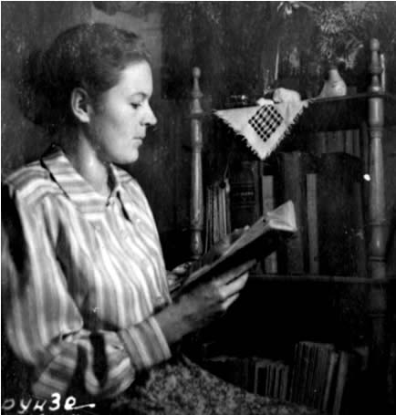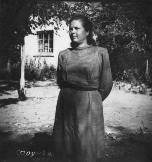 У тёти Жени Муксиновой жила тогда её сестра Зоя (Зоя Григорьевна Чичаева (потом Андрусова). Она была студенткой, ей было 18-20 лет. Это была очень симпатичная девушка с длинной красивой косой, как вспоминала мама. Вот её фото, сохранившееся с тех времён.
