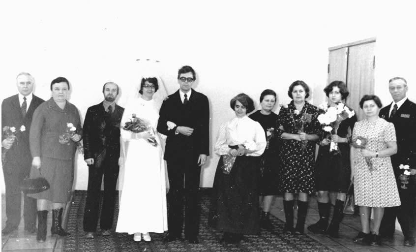 В загсе в день нашей с Толей свадьбы. На снимке слева направо: Т.Г.Фоменко (Толин отец), Т.А.Блинова (близкий друг моих родителей),