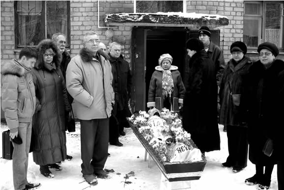 Для того, чтобы поехать похоронить маму, нам пришлось просить нашу старую приятельницу, Наташу Вадхва (Дейнеко), пожить у нас дома 2-3 дня с Валентиной Поликарповной, последить за ней и покормить. На что Наташа - большая ей благодарность - сразу согласилась и была с Толиной мамой в это тяжёлое время. Толя после похорон в тот же день вечером поехал к матери в Москву, а я осталась с Валей и Алёшей ещё на день, чтобы хоть немного их поддержать. Останавливались мы с Толей в тот раз уже в гостинице «Уют», а не в родительской квартире. На поминки 19 января приходили соседи, Коля Близняков, Валина подруга Лена. Когда маму выносили из дома в катафалк, то пришло довольно много людей. Это благодаря Коле – он обзвонил всех наших однокурсников, хороших знакомых, сообщил время выноса, и многие приехали и почтили память моей мамы. Спасибо им всем огромное! Моя подруга Тамара приезжала с Левого берега, несмотря на то, что у неё тогда муж был тяжело болен. Почти все ученики моего покойного научного руководителя Ю.Г.Борисовича, с которыми мы вместе у него учились, тоже пришли.