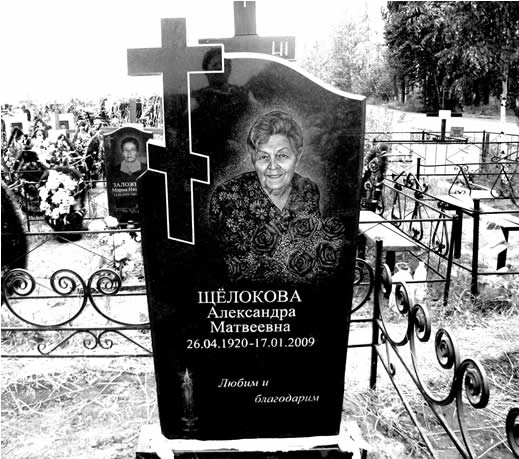 А нашей маме памятник сделала Валя. У нас с ней были некоторые разногласия. Она сначала хотела сделать маме религиозный христианский памятник, без портрета, просто с крестом. Но я возражала, поскольку мама не была религиозным человеком, хотя и была крещёная. Она с уважением относилась к верующим и вообще к религии. Она уважала, как и папа, что наша бабушка верила в бога, молилась и постилась. Но сами родители этого не делали. Я сказала Вале, что, по-моему мнению, маме нужен красивый, добротный светский памятник. Валя решила так и сделать. Она заказала памятник примерно такого же стиля, как мы сделали для Валентины Поликарповны, высокий, из чёрного гранита, с маминым портретом, тем самым, который, в виде фото стоял на её могиле в начале. Мы с Толей были этому рады. Хотя портрет мамы получился не очень удачным, но всё же она там узнаваема. Это фотография, которую я делала в день Победы 2005 года, когда маме выдали удостоверение Ветерана. Ей было тогда 85 лет.