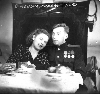 Мама и папа в гостях у друзей, на праздновании Нового 1950-го года.