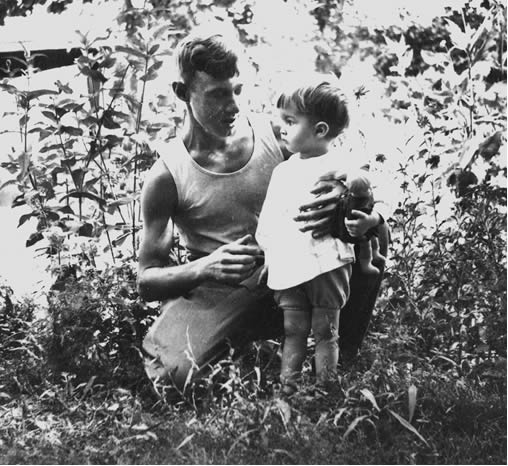 Мы с папой позируем перед фотоаппаратом в выходной день. Москва, 1954г.