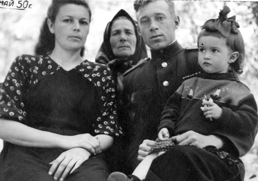 Наша семья: мама, бабушка, папа и я. Май, 1950 г.