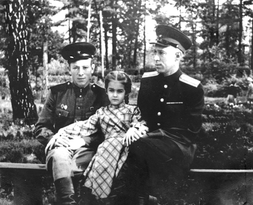 Когда мне было 3,5 года, мы переехали из г. Фрунзе в Москву, так как папа поступил тогда в военную академию им. М.В.Фрунзе. Поэтому нашу жизнь в г. Фрунзе я плохо помню. Только какие-то эпизоды сохранила память, да и то больше благодаря папиным фотографиям. Помню, как папа фотографировал нас всех вместе, как он часто носил меня маленькую на руках, иногда сажал на плечо. Во Фрунзе мои родители очень подружились с супругами Муксиновыми – Муратом Каюмовичем и Евгенией Григорьевной (Андрусовой). Эта дружба сохранилась у них на всю жизнь. Тётя Женя Муксинова была лучшей маминой подругой, а дядя Миша – лучшим папиным другом. Переписывались они до конца жизни.