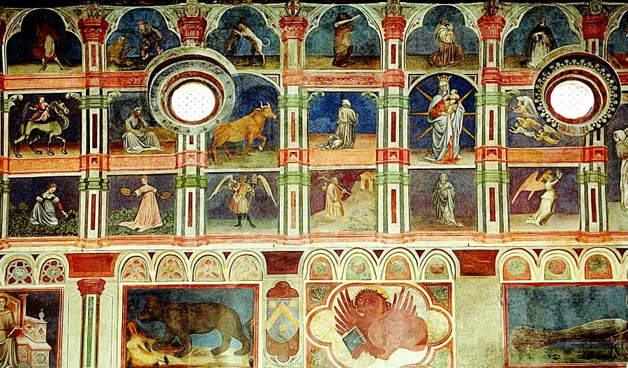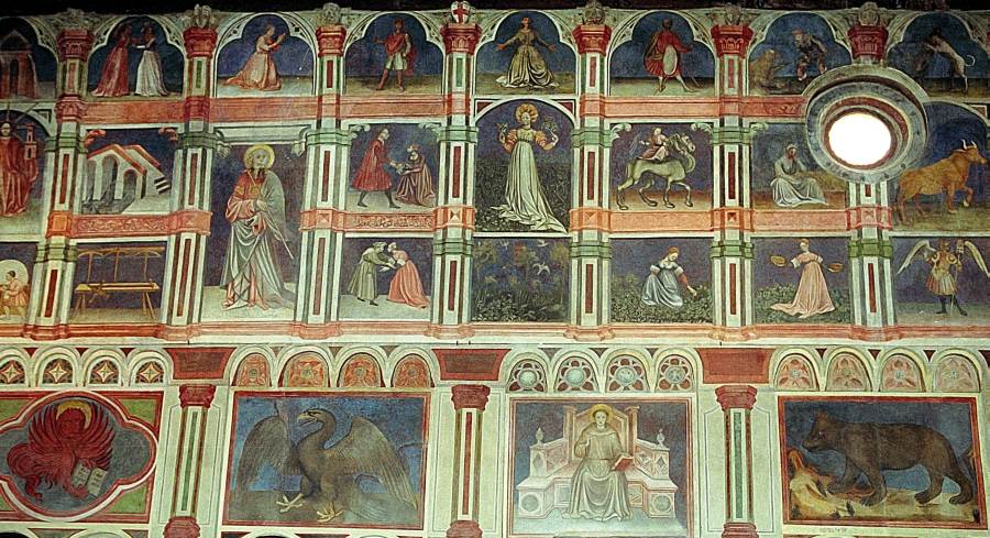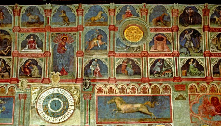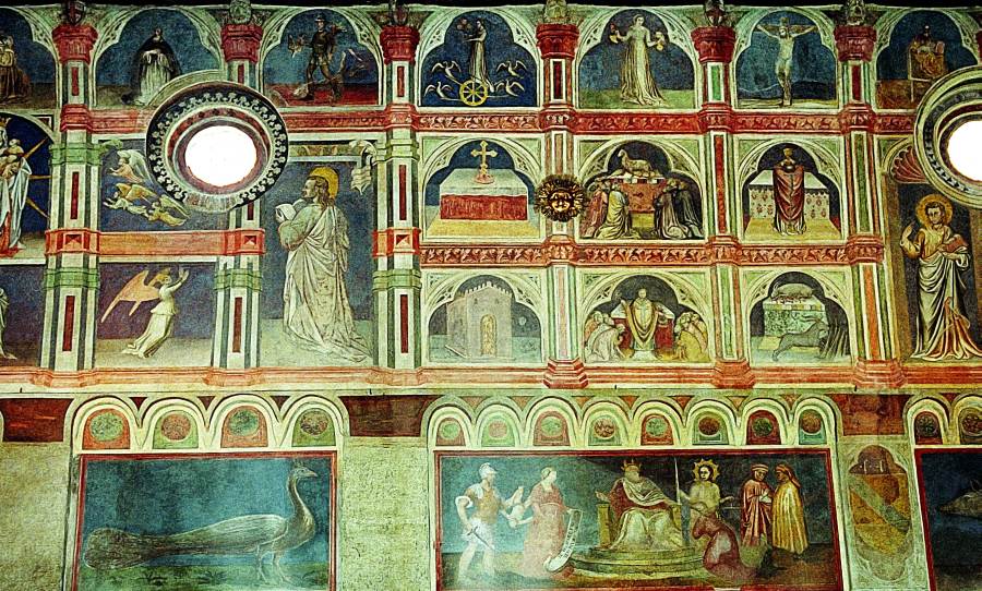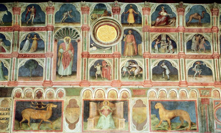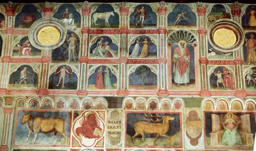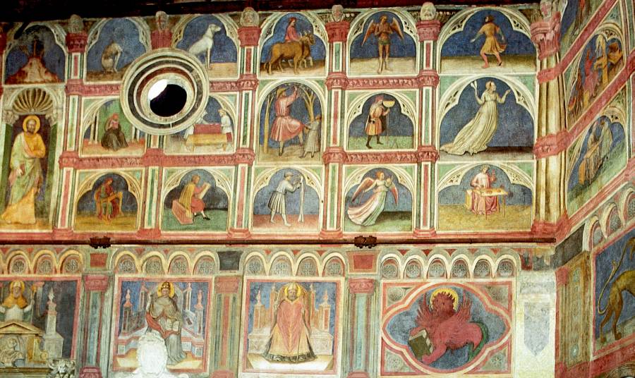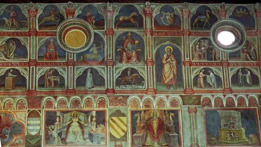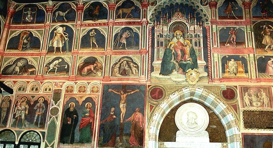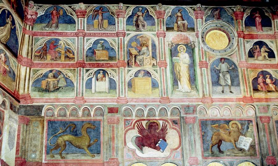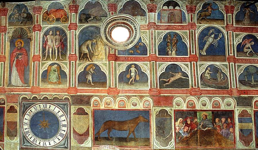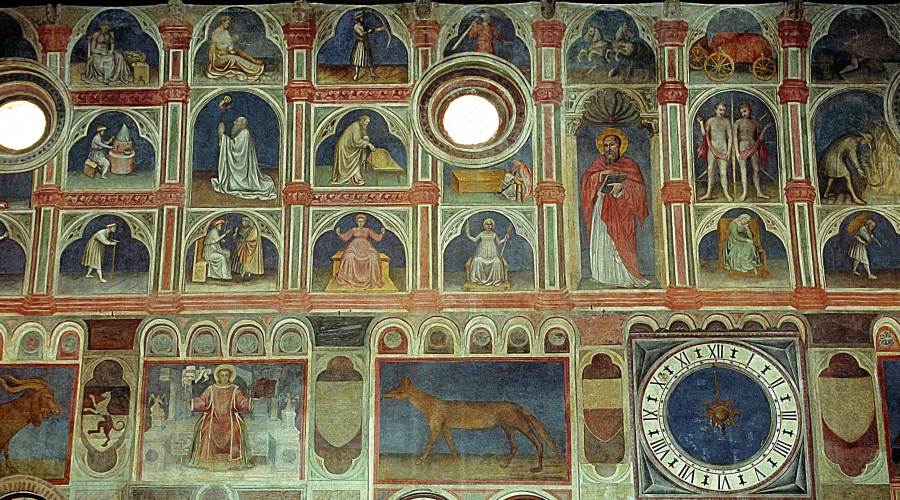 Запомним эту дату: вторая половина XVIII века. Именно тогда фрески Палаты Раджоне, как нам говорят, были "аккуратно восстановлены" и приобрели свой нынешний вид, Якобы совпадающий с фресками Николо Миретто и Стефана Феррарского середины XV века.