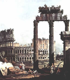 Fig.1.123.Frammento deldipintodi А.Canaletto. Un Golgota artificiale con tre croci collocate sulla sommità del Colosseo romano. Tratto da [535:00 - Claude Moatti. Op. cit].