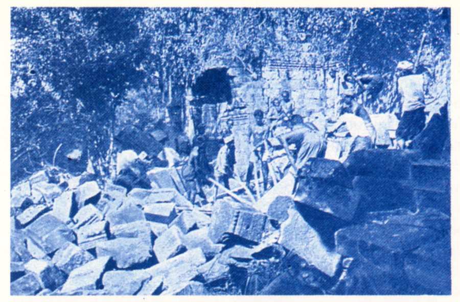 Рис.1.28. Работы в Байоне (Камбоджа). Разборка одной из частей фасада храма. Картина полного запустения и разгрома. Сооружения густо оплетены растительностью. Фотография 1901 года. Взято из [99:0], с.79.