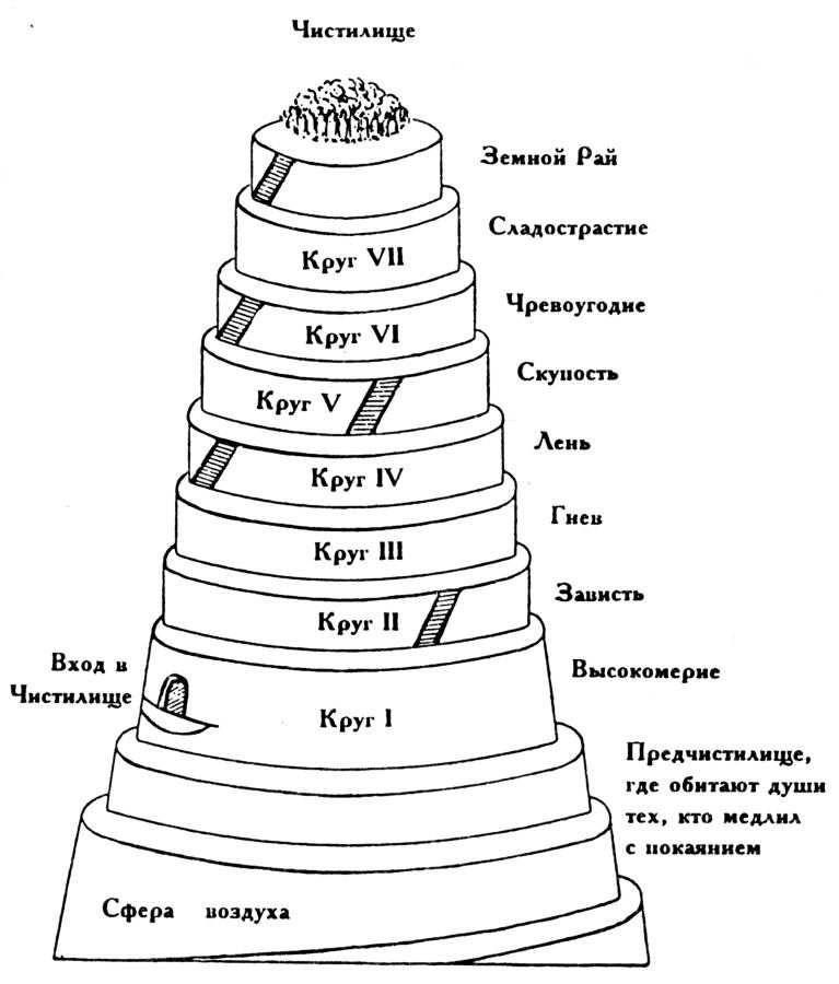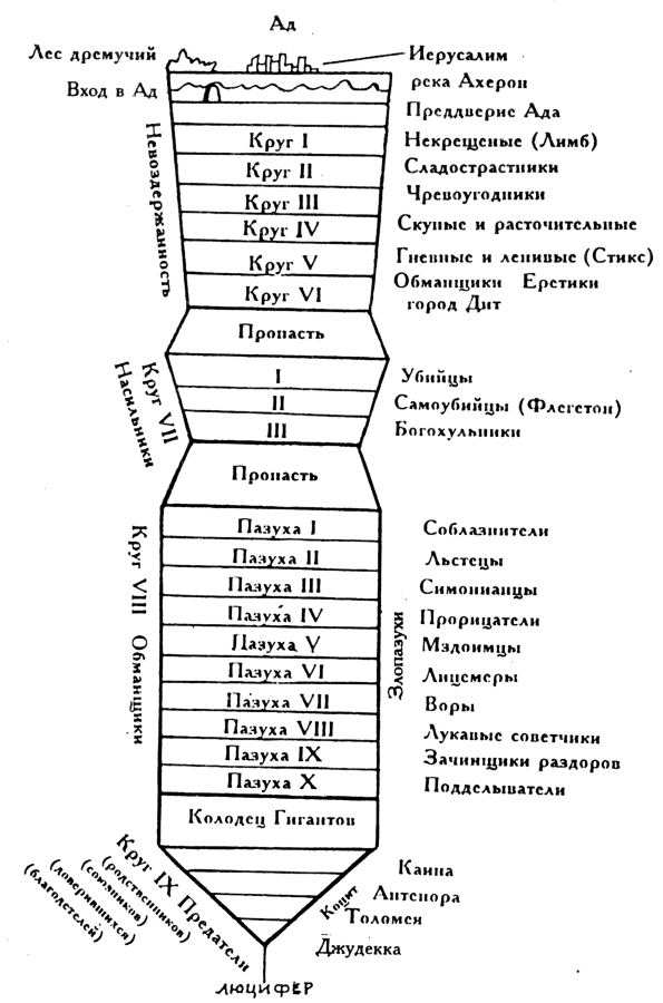 Рис.1.137. Более детальный "чертеж-разрез" ада, по Данте. Реконструкция современных комментаторов. Взято из [230], с.8.