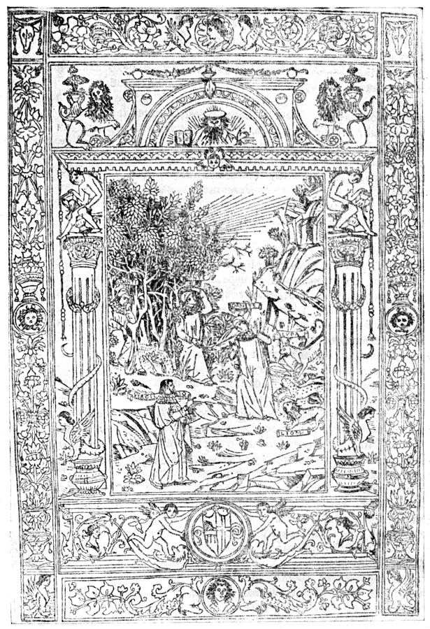 Рис.1.138. Заглавный лист к "Божественной Комедии" Данте издания якобы 1487 года. Согласно нашим исследованиям, Данте жил не в XIV веке (как обычно считается), а существенно позже - не ранее конца XV века, см. "Библейская Русь", гл.18:22, а также нашу книгу "Божественная Комедия накануне конца света". Обратите внимание на амуров и прочие украшения, какими любили оформлять книги в XVII-XVIII веках. Взято из [241], с.151.