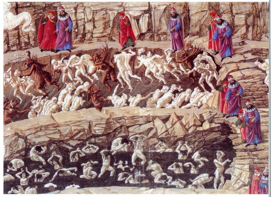 Рис.1.139. Боттичелли. Иллюстрация к Песни XVIII "Ада" Данте (Божественная Комедия). Якобы 1495-1496 годы. Взято из [91:1], с.27.