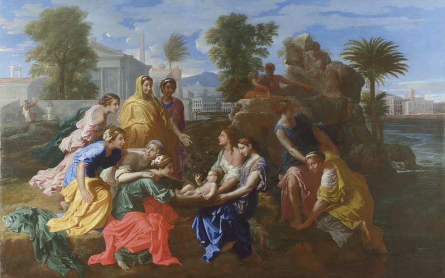 Рис.1.141. "Нахождение Моисея". Никола Пуссен, 1651 год. Моисея, вытащенного в корзине из воды, показывают дочери фараона. Взято из [40:1], с.424, илл.420.
