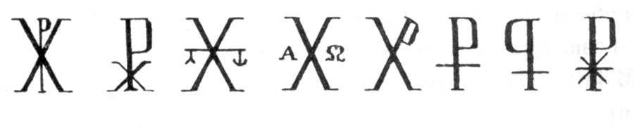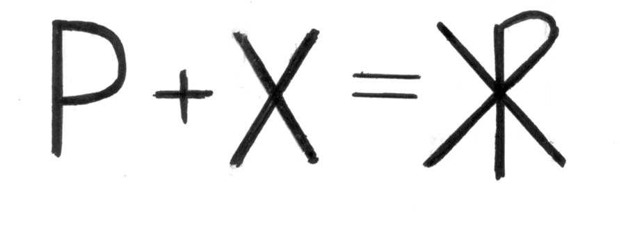 Здесь "Рождество Христово" обозначено очень распространенным в средние века символом, в которой буквы Р и Х соединены вместе, рис.2.2, рис.2.3, рис.2.4. А число 48 обозначено славянскими буквами: М = 40, И = 8. Сочетание МИ стоит под титлой, изображенной в виде горизонтальной черточки сверху. Титла означает здесь, что написано число, а не слово. Напомним также, что церковно-славянское И писалось как современное Н. Церковно-славянское У писалось как сочетание ОУ. Буквы А и Я отличаются "хвостиком", уходящим вниз посередине, рис.2.5.