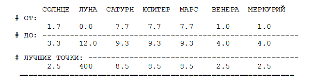 ДАННЫЕ ДЛЯ ПРОГРАММЫ HOROS