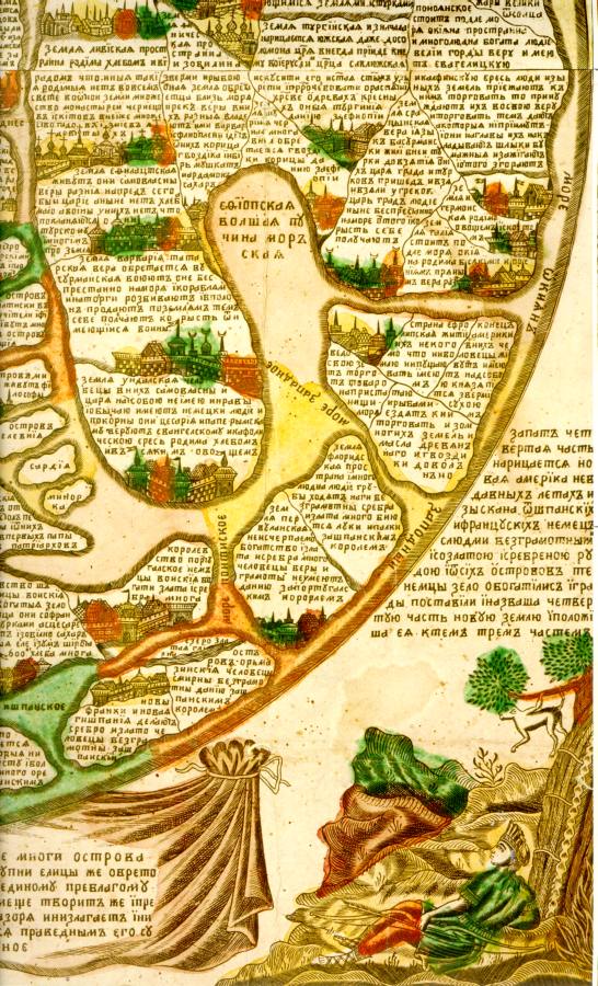 ### "Третья часть нарицается Европа, меньшего Ноева сына Афета жребий. Протизается ж от Среднего моря и до Великого моря Окияна. С другой стороны до Варяжского моря. С третьей стороны до Мурманского моря и до Студеного моря иже есть Соловецкая пучина".