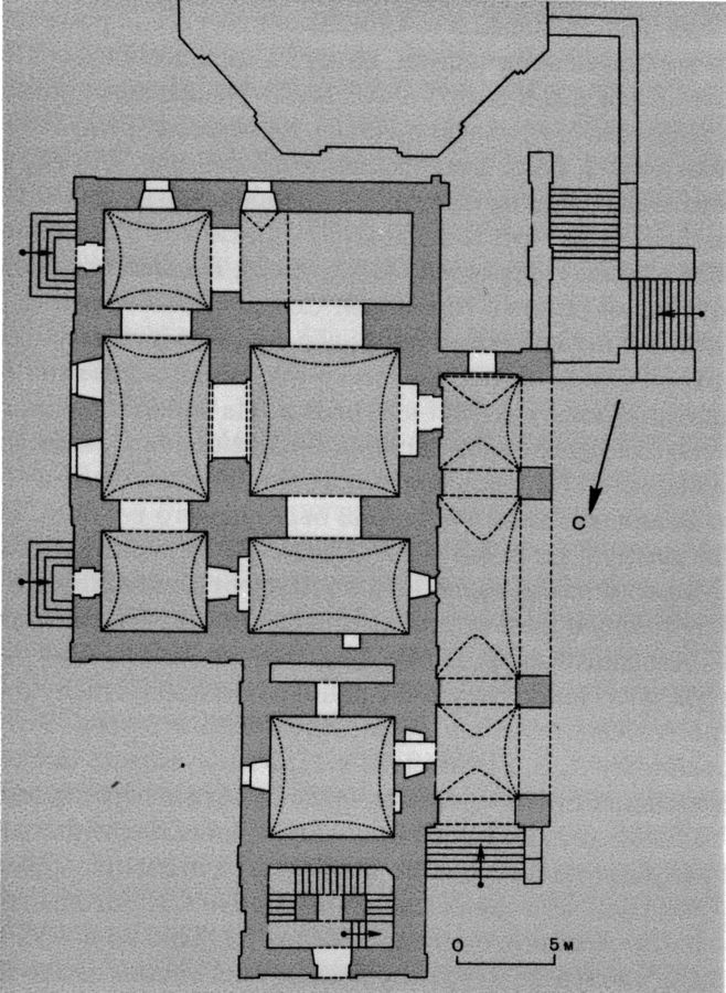 . Она построена в виде четырехгранного здания. Ее стены, как у любой такой церкви, тоже ориентированы по сторонам света. Впрочем, в современном ее виде - чуть менее точно, чем ориентация самого Столпа и его прежней внутренней церкви, рис.6.37