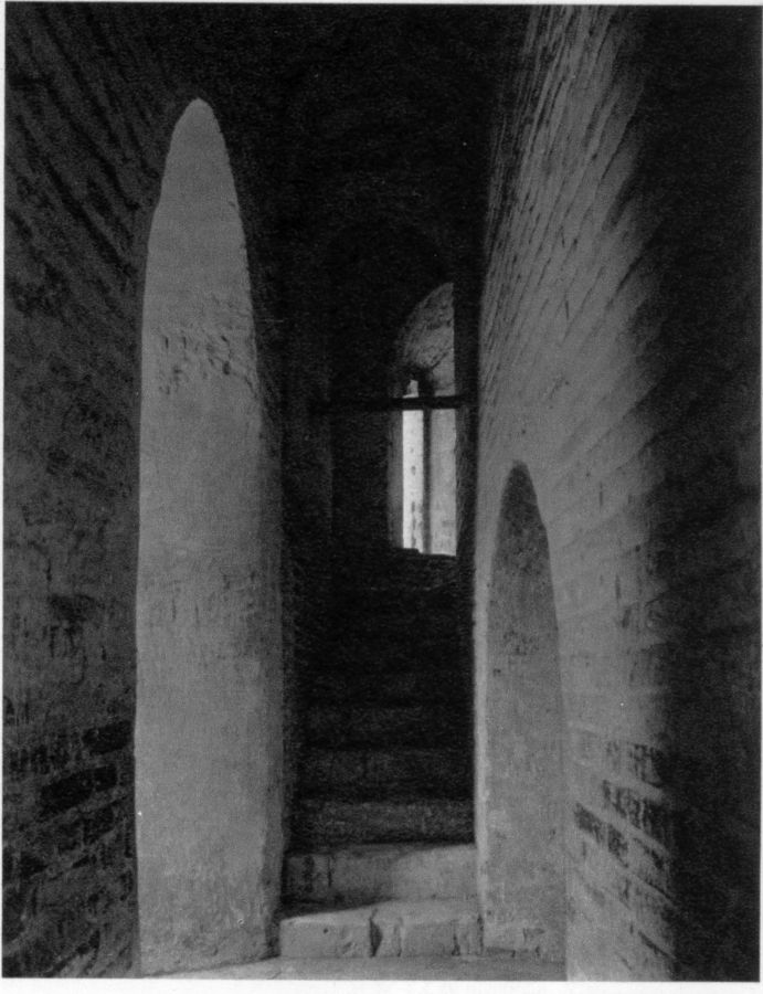 показана внутристенная лестница во втором ярусе Столпа Ивана. Видна мощная кладка Столпа.