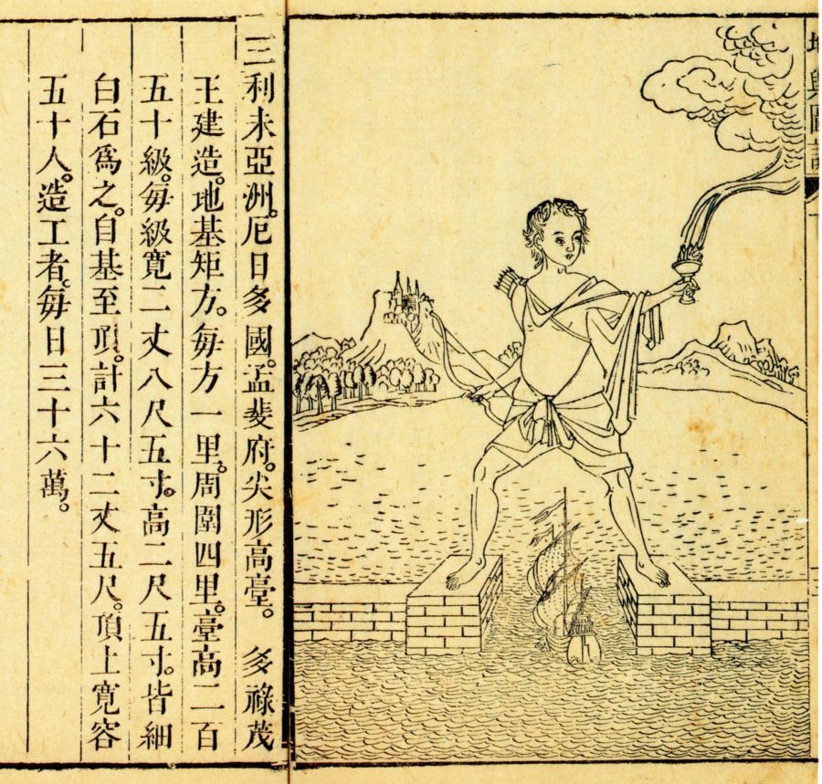 приведен старинный рисунок якобы XVII века, который современные комментаторы считают изображением Колосса Родосского, одного из семи чудес света. Однако, скорее всего, художник XVII-XVIII веков нарисовал здесь свое смутное представление о Фаросском Маяке. Огромное сооружение с факелом наверху, указывающим путь кораблям. Один из них проплывает между ног гиганта. Видно, что суть дела уже забыта и вовсю буйствует фантазия. Кстати, что такое "Родосский Колосс", читатель может узнать из нашей книги "Библейская Русь",гл.18:21.6.