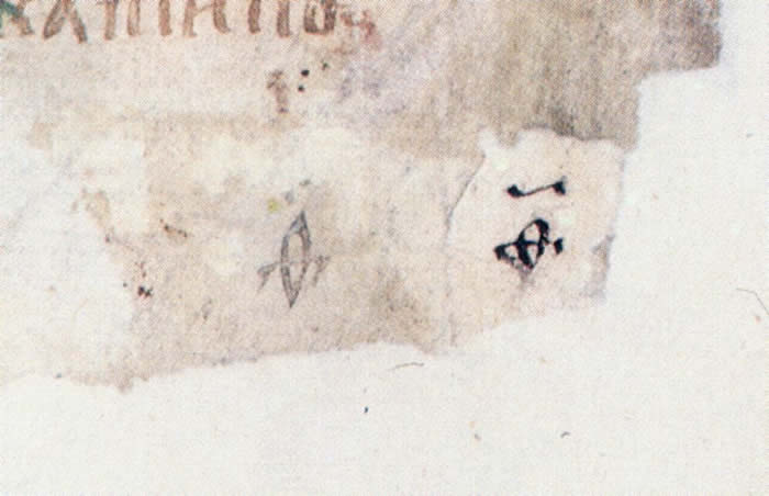 На первом из этих трех листов церковно-славянский номер "десять", то есть "i", очевидно, "изготовили" из бывшего здесь раньше церковно-славянского номера "девять" = "фита". У "фиты" просто подтерли правый бок. Но ЯВНЫЕ СЛЕДЫ пересекающей ее горизонтальной черты остались, рис.1.8
