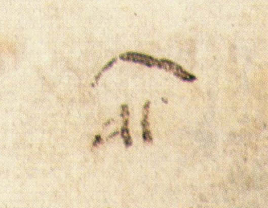 . Чтобы изобразить по-церковно-славянски "двенадцать", нужно написать "вi". Но на соответствующем листе рукописи сначала было написано "аi", то есть "одиннадцать". Кто-то приписал две черточки к церковно-славянскому "а", после чего оно стало похоже на "в". ЭТО ИСПРАВЛЕНИЕ - НАСТОЛЬКО ГРУБОЕ, что его трудно не заметить [715].