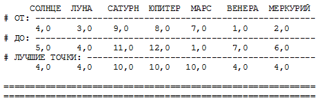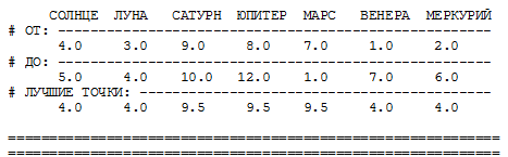 Код данных OL2 (грубый гороскоп зодиака Астрономии