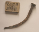 Понятно, что на строительных площадках в бетонный раствор могли случайно попадать различные предметы, в том числе, и стальное долото, которым пользовались строители, см. выше. Между соседними блоками могли по неосторожности застревать и другие посторонние вещи. Деревянные доски опалубки следовало надежно скреплять, чтобы ящики не разваливались под напором большой массы жидкого бетона, налитого в них. Для этого могли использоваться гвозди, которыми сколачивали доски. Потом гвозди вынимали, разбирали опалубку и на новом месте собирали деревянный ящик вновь. Такая схема работ вполне допускает, что в бетоне или между блоками могли случайно попадать и железные гвозди. Спрашивается, существуют ли подтверждения реконструированной нами картины? Оказывается, существуют, и сейчас мы об этом расскажем.